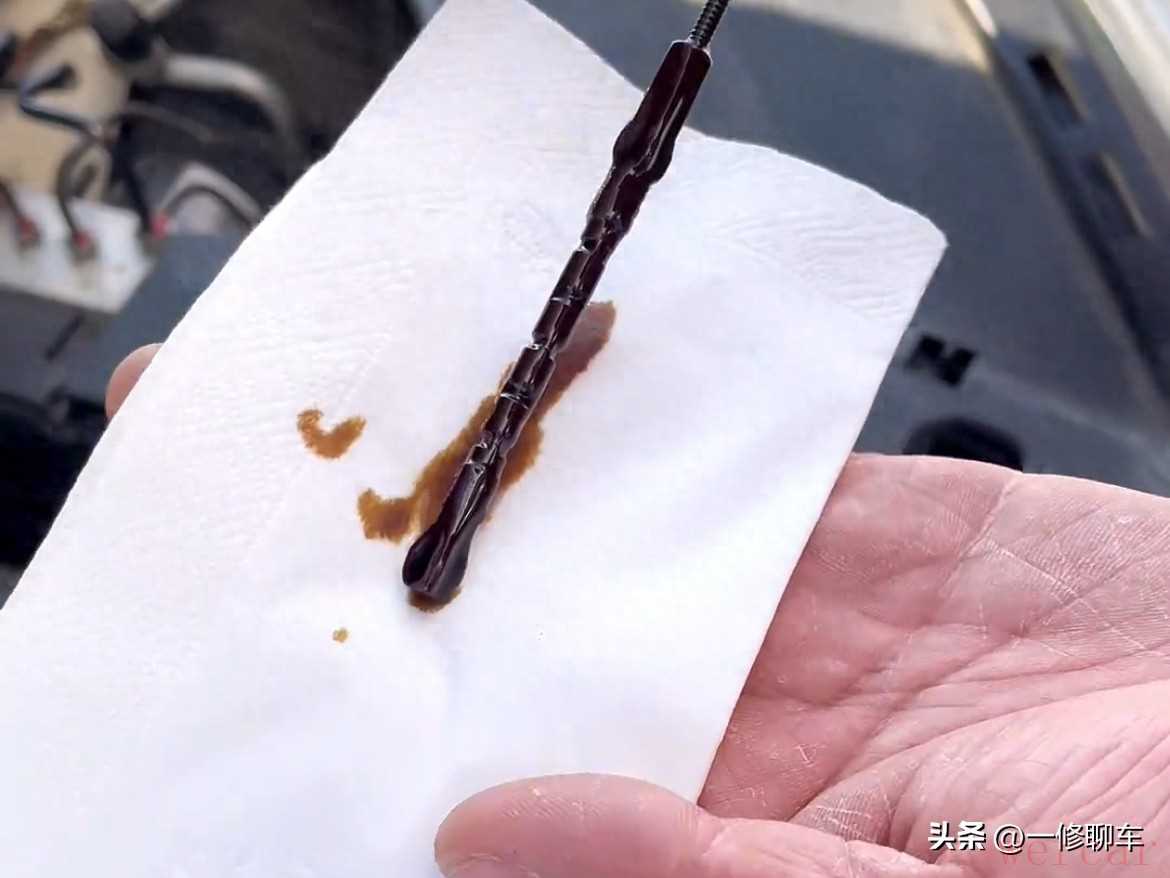 特别要注意那种放出来以后,颜色像墨汁不透亮,而且用手捻动能感觉到细小颗粒,或者能闻到一股焦糊味的机油,这种要么是车子发动机之前就有问题,里面积碳太严重了,要么就是机油质量不佳。
