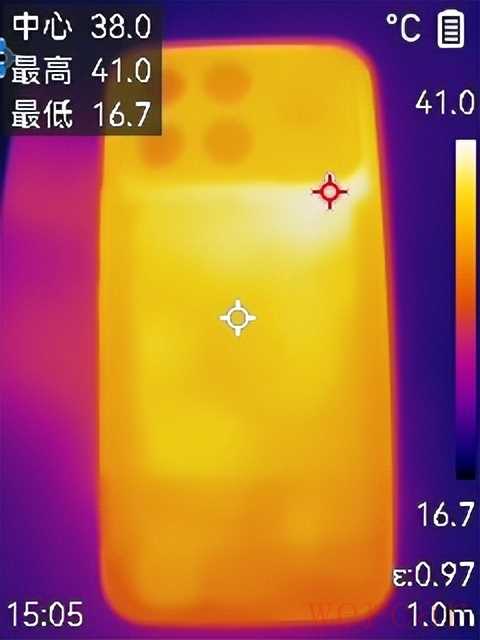 最高温度41度,中心距离最高温度点仅3度,均衡的热量颜色分布让人赏心悦目。