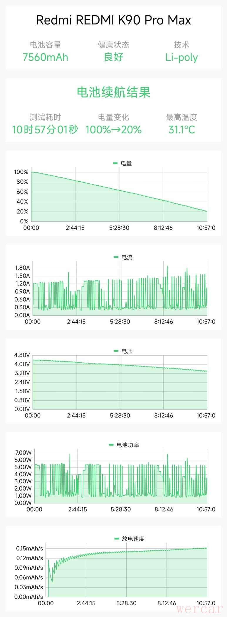 在电池狗狗100%~20%的续航测试中,K90 Pro Max获得了10小时57分的好成绩,根据速率推断到停止运行可坚持13小时41分钟。一整天的重度使用都无压力。
