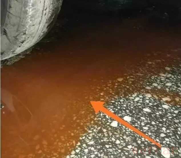 下图所示,这就是流出来的冷却液。师傅表示,冷却液的颜色很不正常,里面混合了很多铁锈,可以判断发动机要么是很久都没换过冷却液,要么是换的冷却液质量太差。经过求证,车主说他从没换过冷却液,一直都是少了就添加,车已经超过了5年,这是不正确的。
