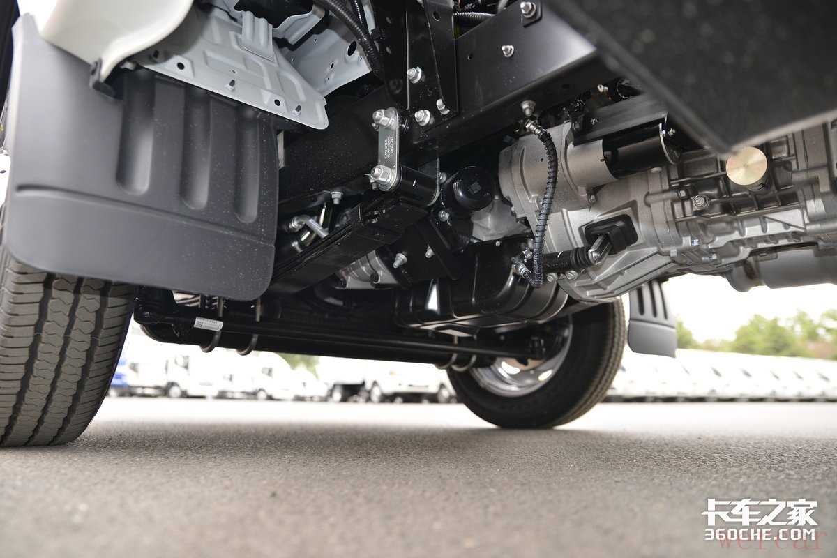 底盘方面,恺达X5使用了130x50x4mm的高强度材质车架,提升承载强度还能有效减轻整车自重。前3后5少片簧悬架结构,2.1吨级加强型后桥,以及双后轮设计保证了载重行驶能力可靠稳定。