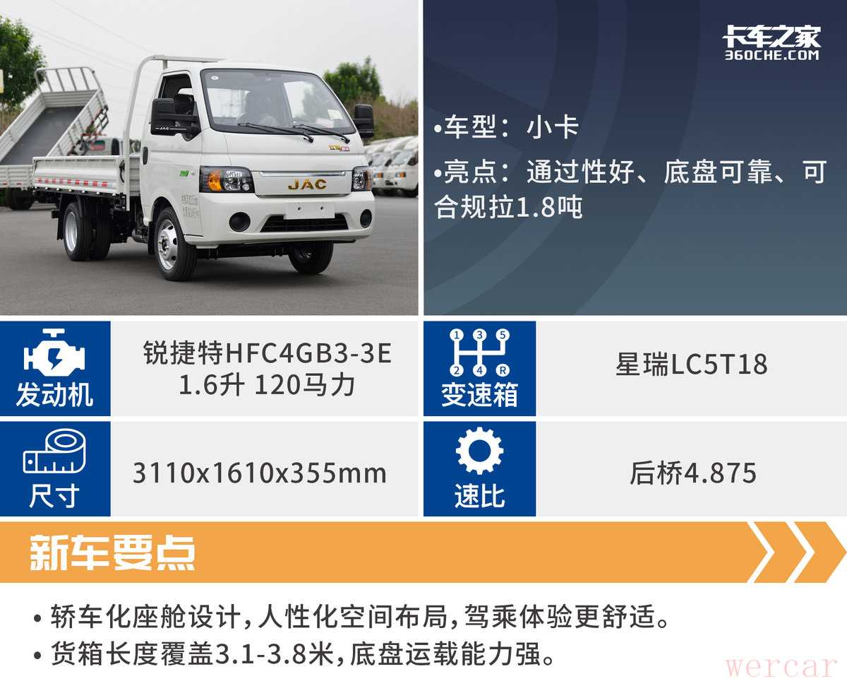 1、承载性 在严格的治超管理环境下,合规装载多一点意味着多赚一点钱。所以货厢尺寸和底盘配置十分重要,它们决定了这趟货能不能拉。