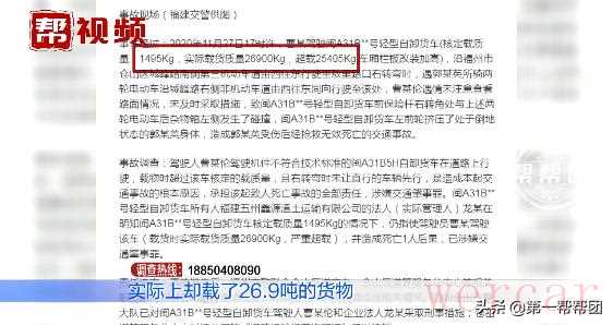 “大吨小标”车辆隐患重重。在2020年11月27日福州一货车超载导致人员死亡的案件里,从交警公布的现场照片来看,这部自卸货车只能载1.495吨,实际上却载了26.9吨的货物,超载了25吨之多。
