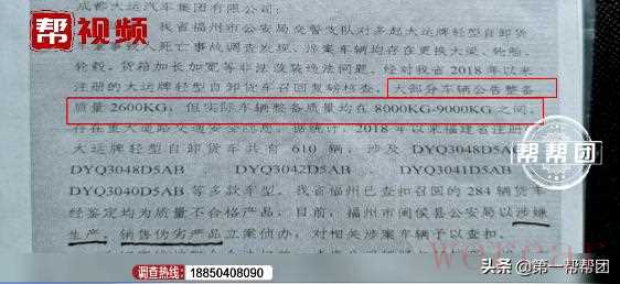 此外,记者从省公安厅发给成都大运汽车集团有限公司的函里,看到交警对一些大运自卸货车的复磅核查时,发现大部分车辆的整备质量是2.6吨 但是实际上车辆的整备质量均在八吨到九吨之间。超载这么严重,车主难道不知情吗?