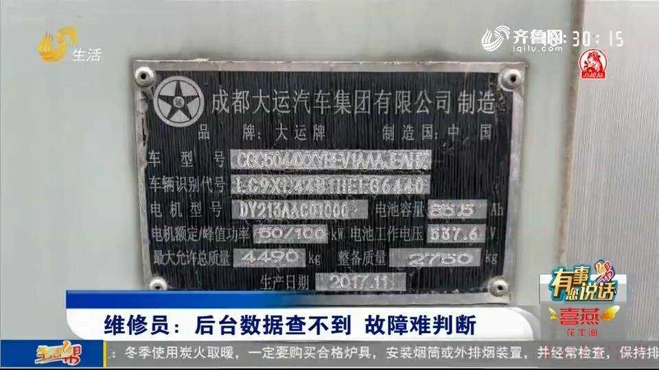 “车辆正常行驶的时候会突然断电,然后就不能正常行驶了。”在现场,臧先生启动了这辆大运新能源货车。不到20分钟,车辆便出现了故障码。