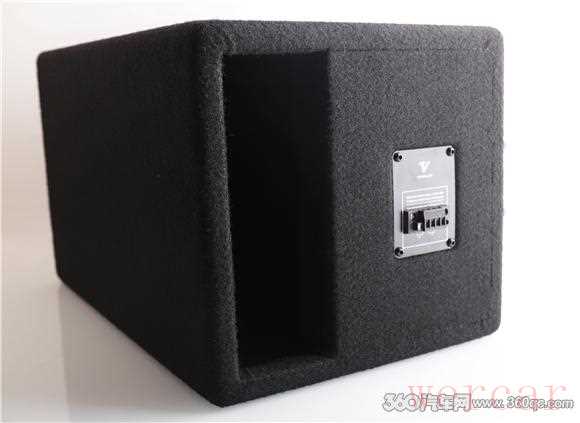 箱体的左侧面是长方形的开孔设计,有效的减少声噪,让超低音的低频辐射得以提高,有更低的下潜和更有力度低频声压,使得其低频效果更有力道。孔洞旁边是接线面板,采用专用的接线端子和线束,大大的简化了安装的过程。