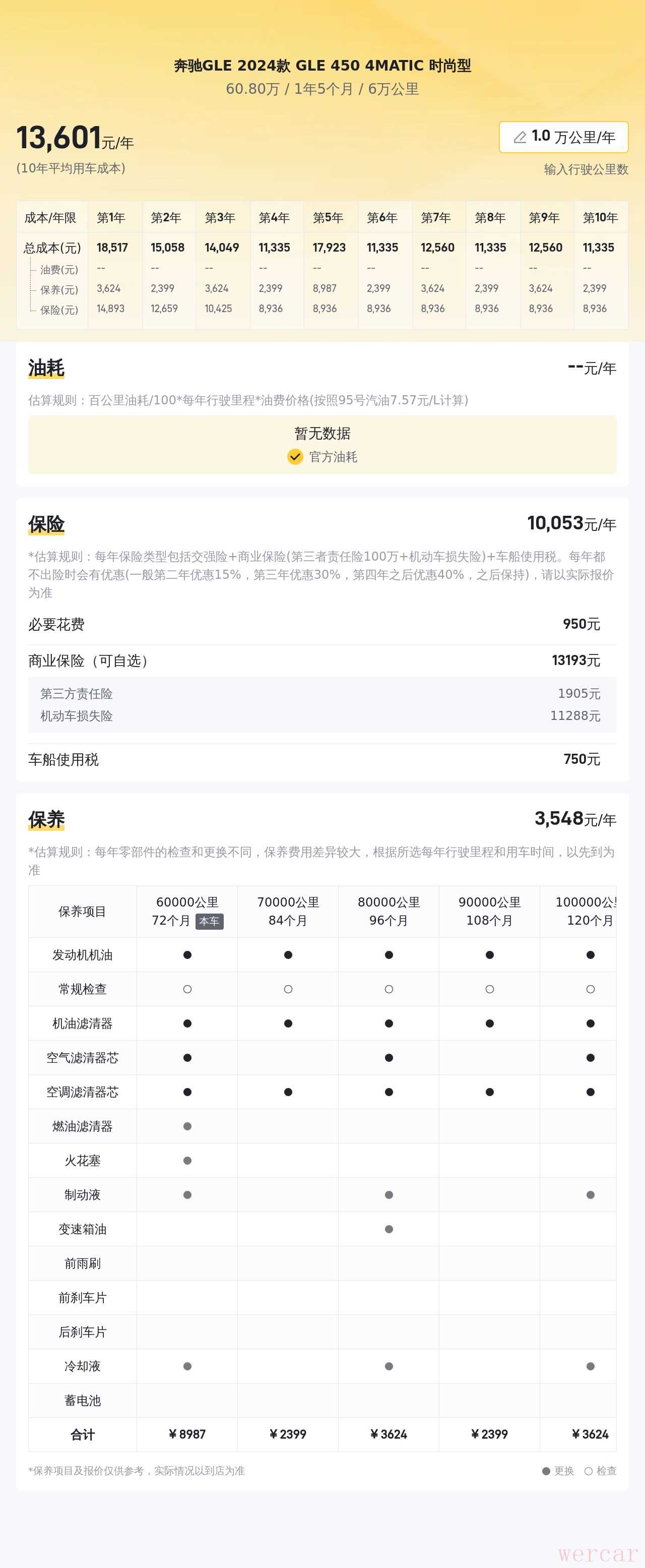 据估算,奔驰GLE 2024款 GLE 450 4MATIC 时尚型的用车成本是11868元/年,可以说比较低了。