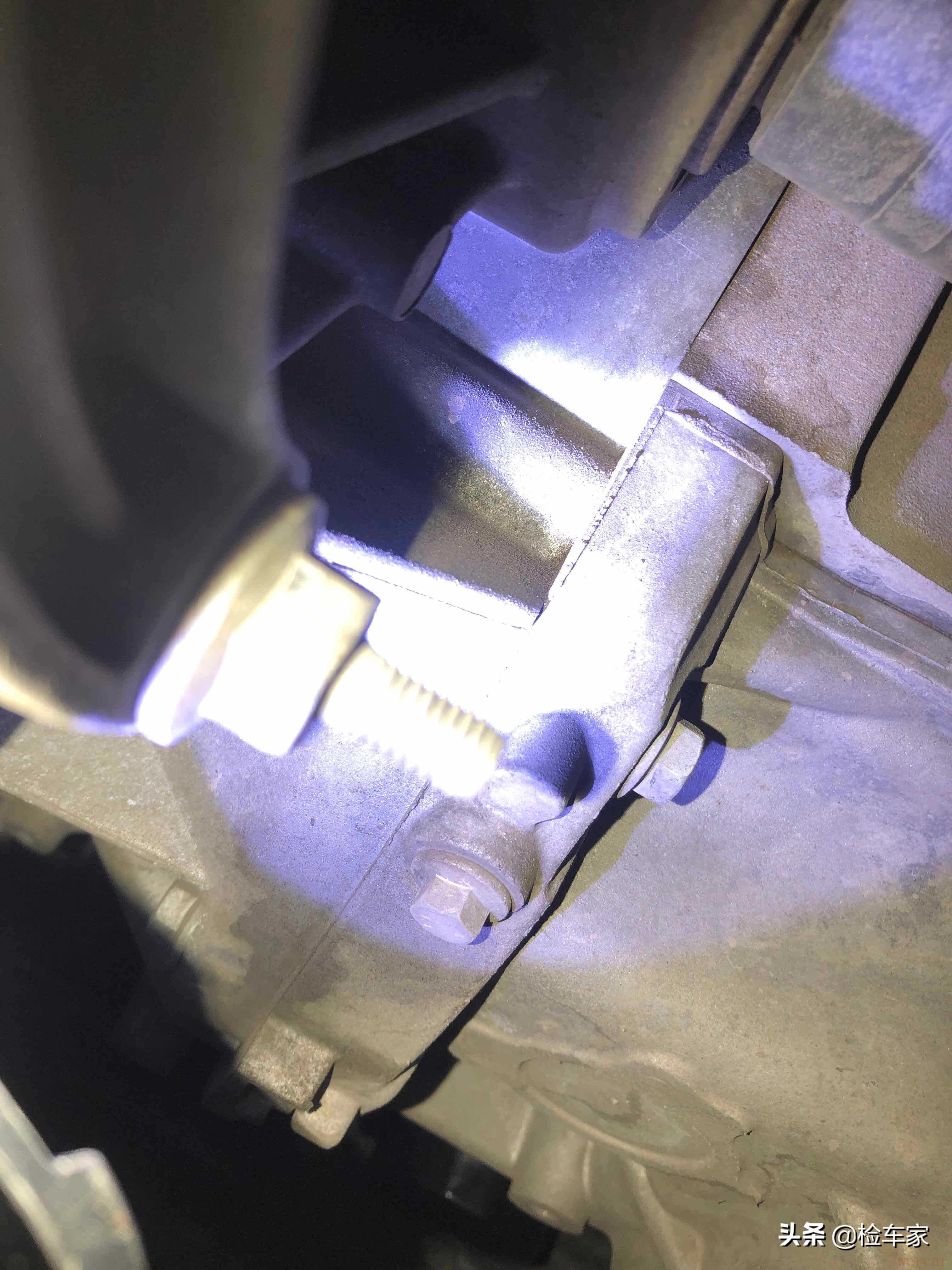 检测发动机下部机脚固定螺丝,机脚拆卸更换过,多半是为了解决起步或怠速抖动的问题。