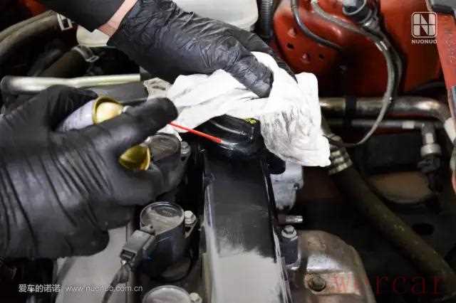 机油更换完成后,需要把上家遗洒的油渍清洗干净。