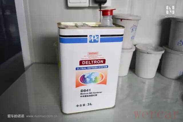 我们使用PPG水性漆,为小橙进行喷漆作业。相比油性漆,水性漆以水作溶剂,可以直接用水清洗喷枪,更加环保,漆面附着力也更强。