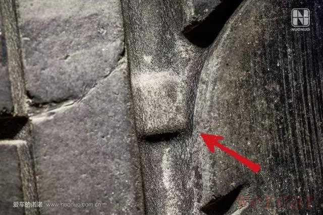 2..胎面花纹沟底或胎边都会有无数的小裂纹,增大爆胎的几率。