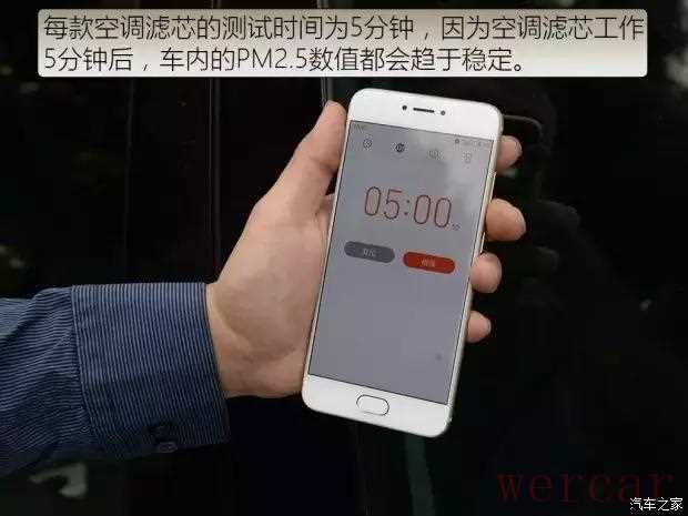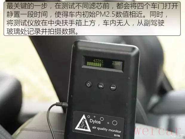 为了尽量保证测试的严谨,在测试每款滤芯前都会打开车门一段时间使车内初始PM2.5数值相近。之所以选择在车外拍摄是因为人体的肺部也相当于一个空调滤芯,在车内呼吸和交谈都会影响测试结果。