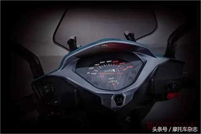 MO赞的大灯采用常亮式,左右车把和车把总成的做工很精致,配备了双闪开关。仪表十分简洁:时速表、油表和里程表,既复古又大气,这样简洁的设计反倒在国产车中不多见。前后灯圆溜溜的非常“卡哇伊”。