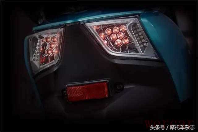 除了外形“拽”以外,配置也“拽”,除了前面说了带有小风挡以外,这款车还配备了LED转向灯和尾灯,远近光分开的外凸式前大灯,以及质感华丽的ABS车身材质和比亚乔级别的烤漆,厂家甚至宣称不怕日晒雨淋,5年不掉色!确实够“跩”。