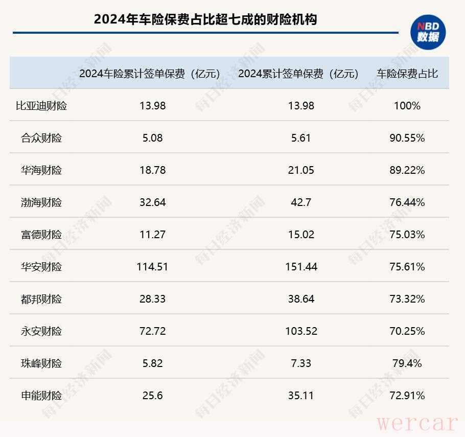 合众财险、比亚迪财险等10家机构车险保费占比超过70%
