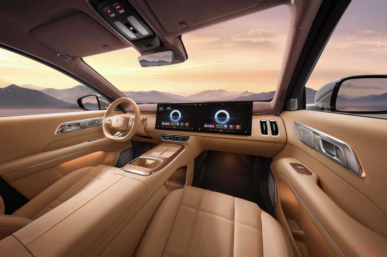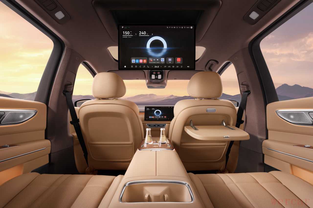 配置方面,国产新能源明显更舍得下料。深蓝S09即使在入门版本上,也给到了43英寸AR-HUD,可以把导航投在前风挡上;还有21.4英寸后排吸顶屏,让孩子看动画片更过瘾。