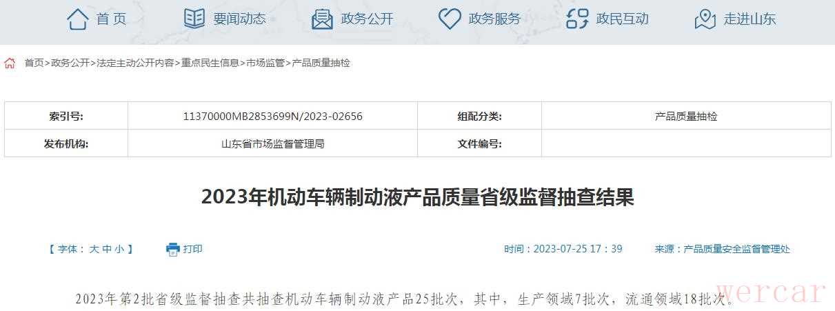 山东省市场监管局抽查25批次机动车辆制动液产品,全部合格保障行车安全