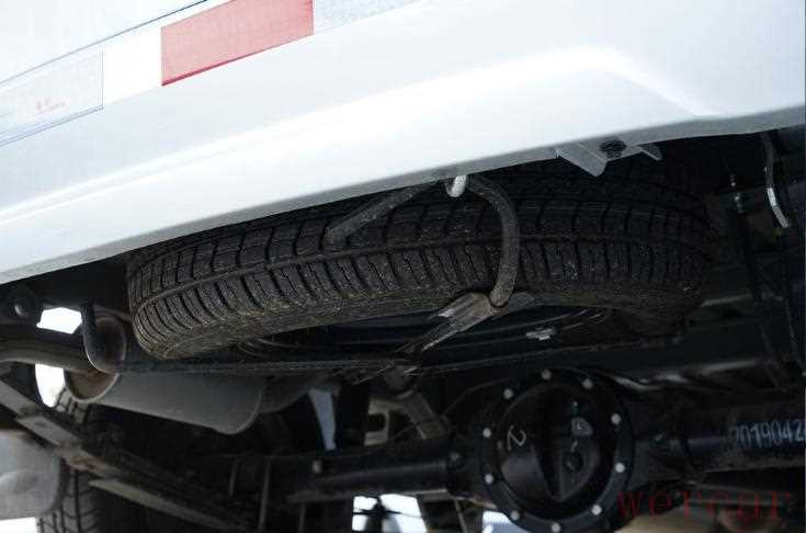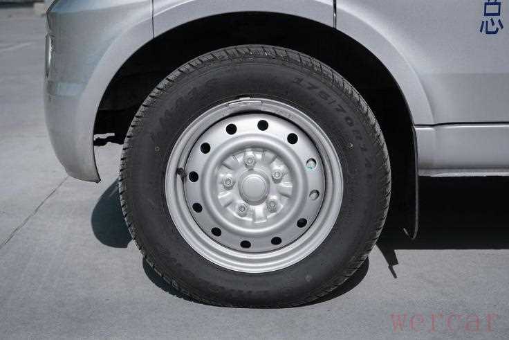 轮胎方面,可以看得出它的胎毛比较新,而轮胎规格分为前后,咱们看一下尺寸规格如何。它的前后轮胎规格尺寸均为165 R14LT,并且采用实心盘式作为自己的前制动器,鼓式作为后制动器,且采用手刹作为驻车制动。