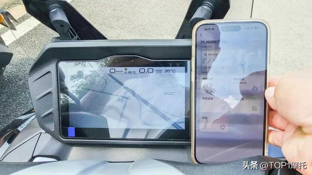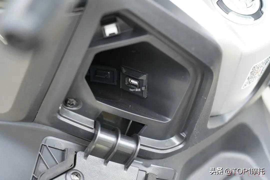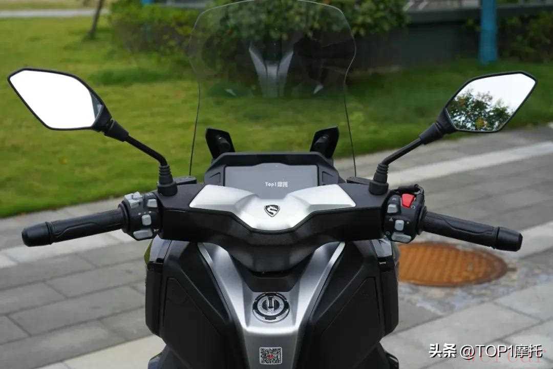 车头中间有摄像头,有行车记录仪和哨兵模式的功能,这些功能可以通过手机APP来设置以及查看相关的视频记录画面,对于踏板摩托车来说,行程记录仪的功能一定是刚需。