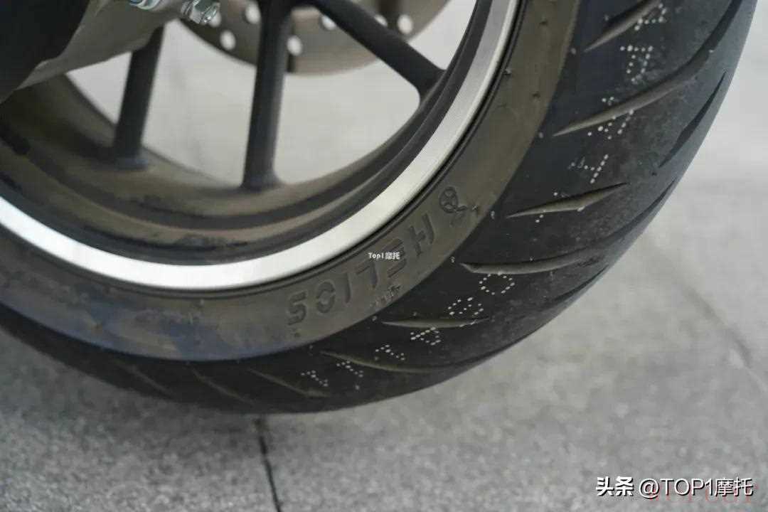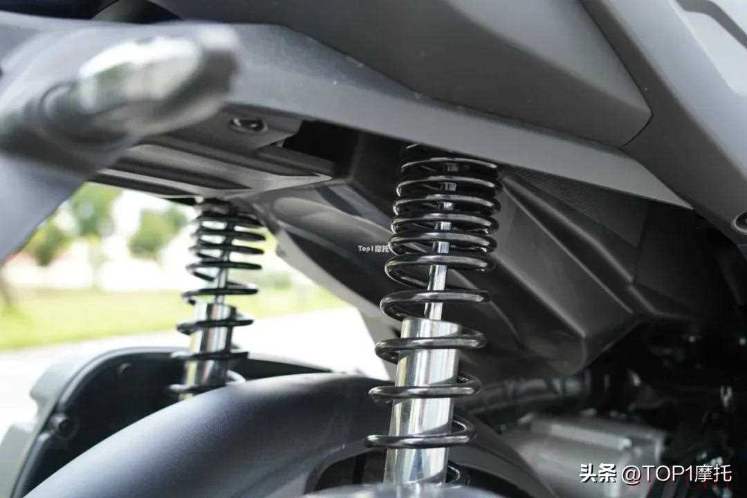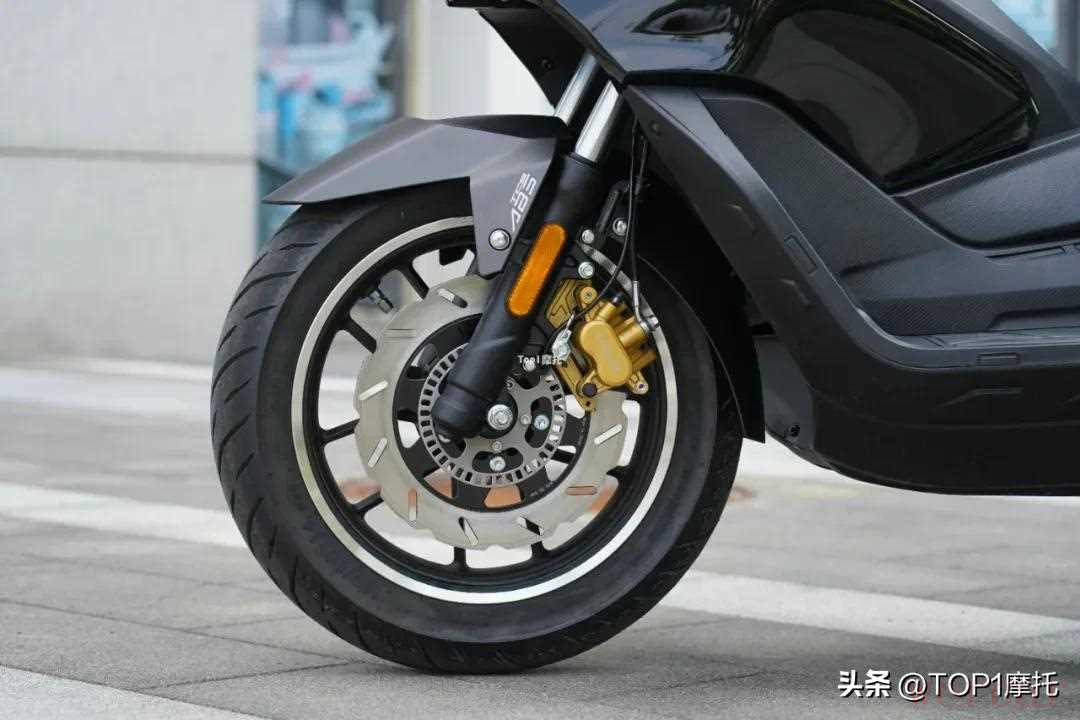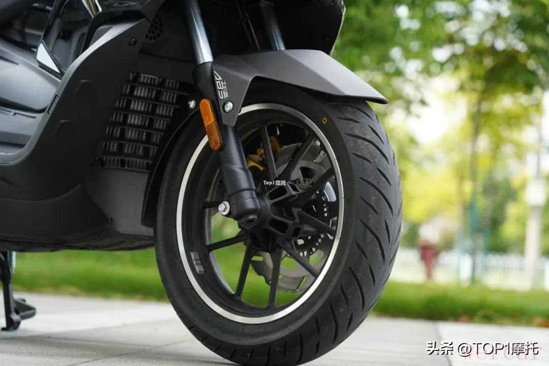 在行走系统上,正立式的前减震,搭配传统的双边后减震,规格上并没有特别高,但是减震调的偏运动,走烂路会有点颠,不过支撑性更好,不会像沙发一样软趴趴,在骑车压弯的时候会很爽。前14寸后13寸的轮毂,搭配赫璐的半热熔轮胎,视觉效果不错,轮胎抓地力也没问题,应付日常通勤代步,偶尔跑山压弯都是可以的。丨性能实测