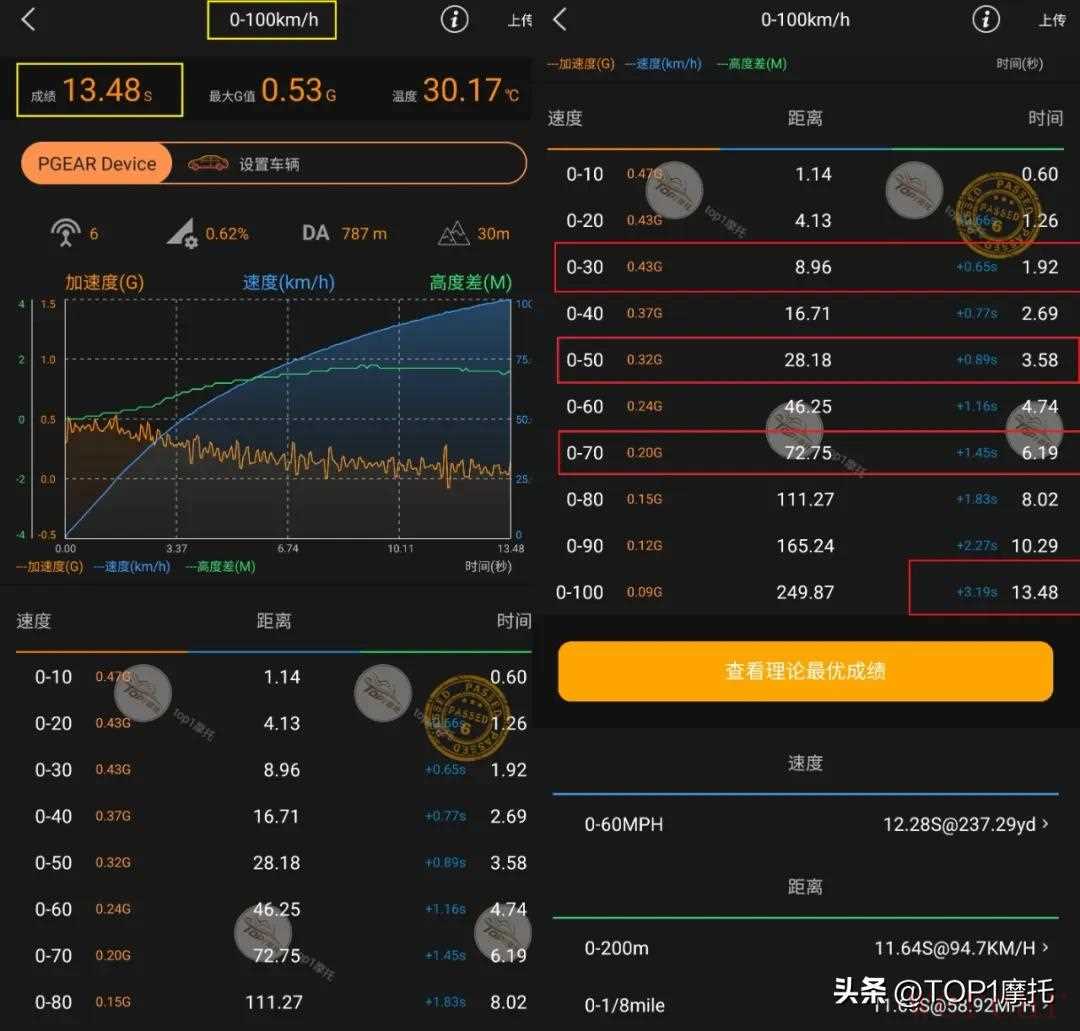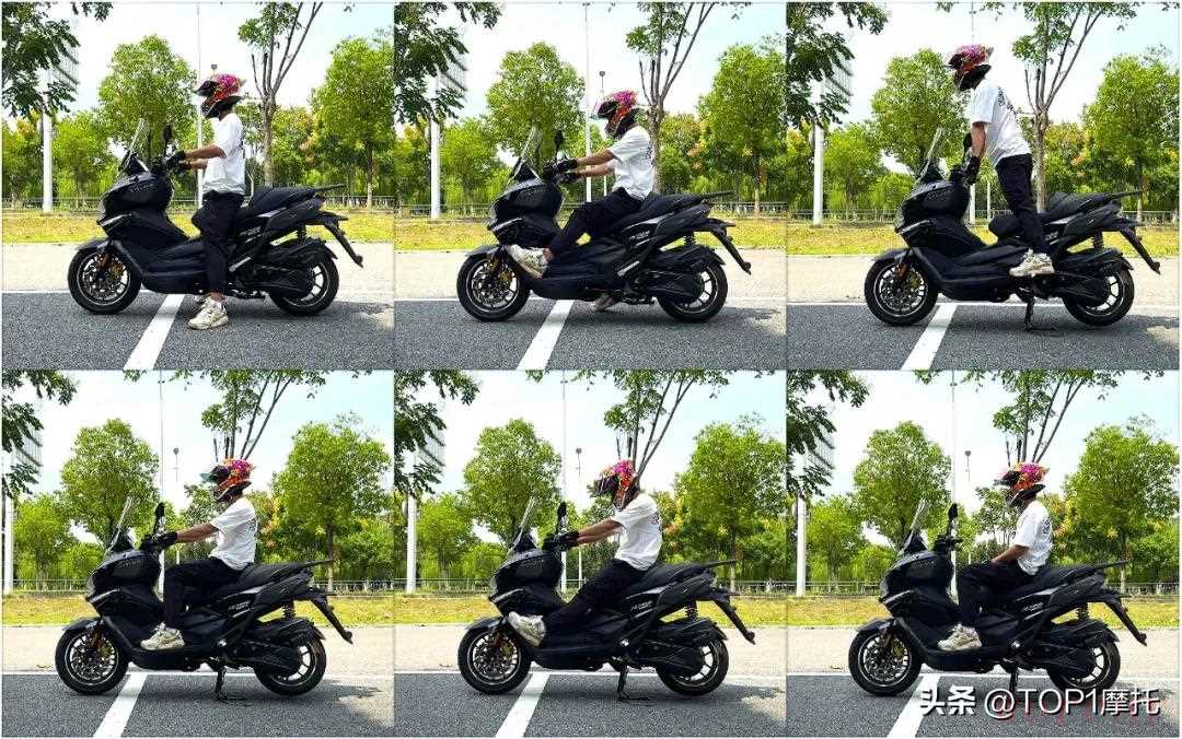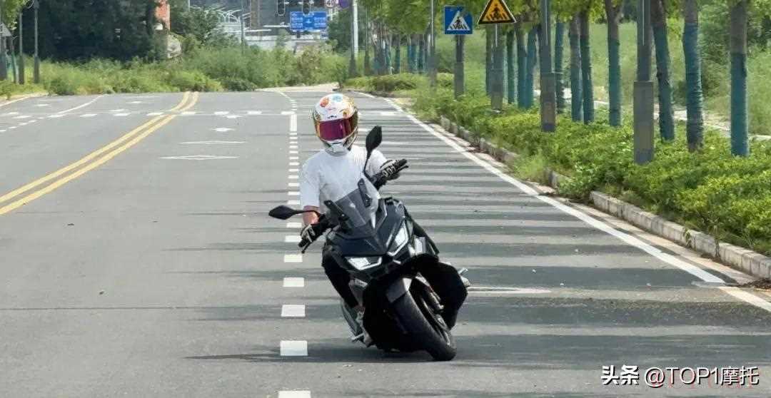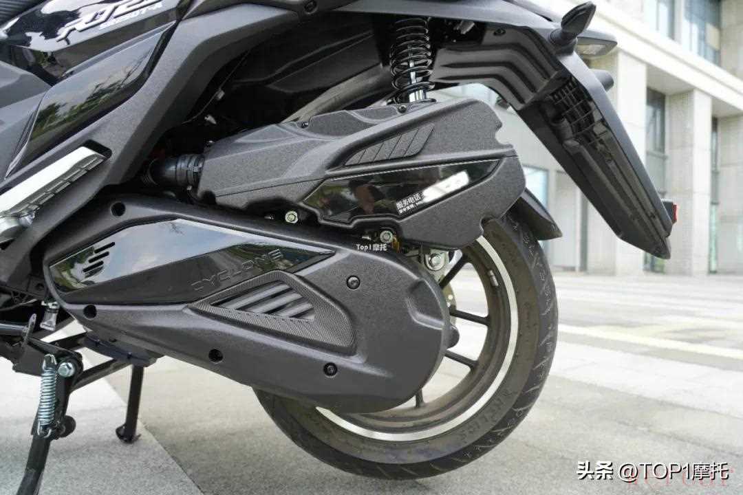 在行走系统上,正立式的前减震,搭配传统的双边后减震,规格上并没有特别高,但是减震调的偏运动,走烂路会有点颠,不过支撑性更好,不会像沙发一样软趴趴,在骑车压弯的时候会很爽。前14寸后13寸的轮毂,搭配赫璐的半热熔轮胎,视觉效果不错,轮胎抓地力也没问题,应付日常通勤代步,偶尔跑山压弯都是可以的。丨性能实测