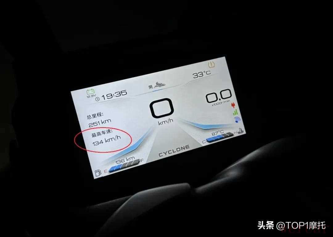 XQ310这台四气门的发动机,更擅长中后段的动力输出,所以RT250的极速性能我也测了一下,表显最高时速134km/h,GPS起码也在125km/h以上,比厂家给到的最高时速要高一些。