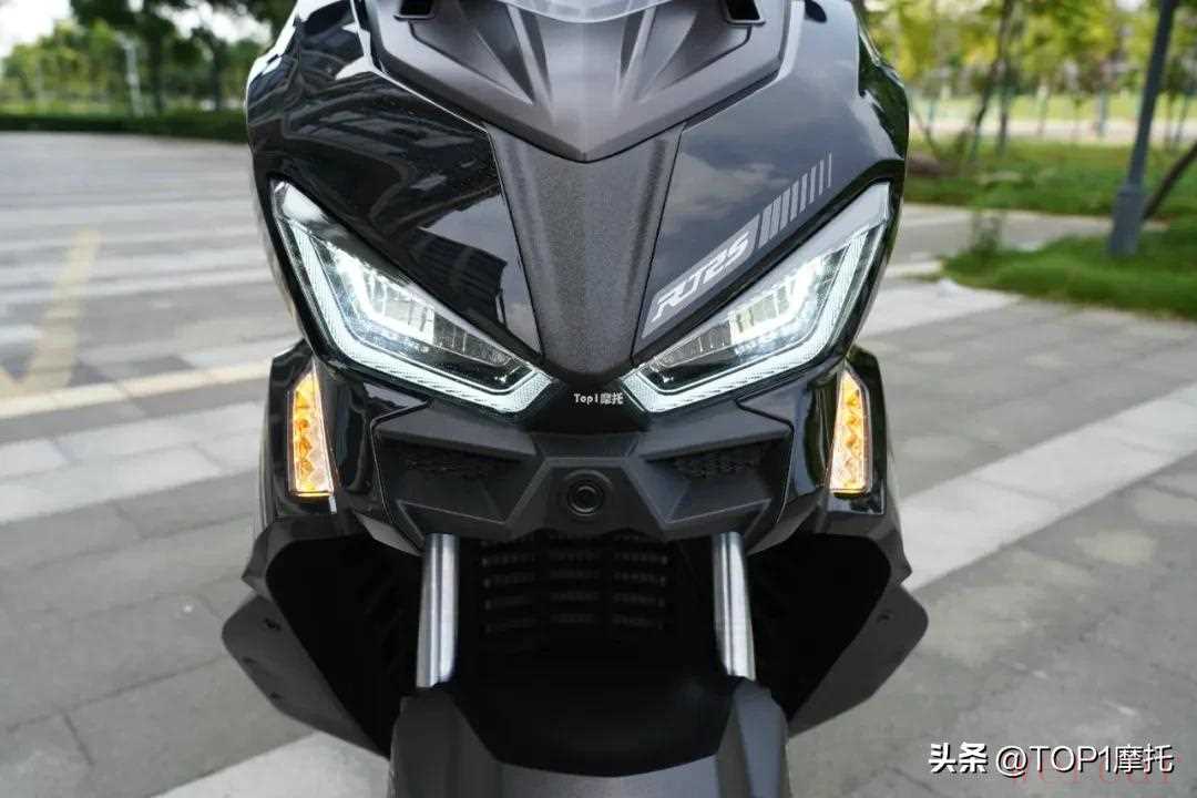 "外观设计:" RT250采用了典型的运动踏板车设计语言,线条流畅、动感十足。车身相对紧凑,风阻系数控制得不错。整体给人的感觉就是为速度和操控而生。车头设计犀利,灯组布局清晰,夜间辨识度高。车身侧面线条流畅,轮圈造型也比较有辨识度。