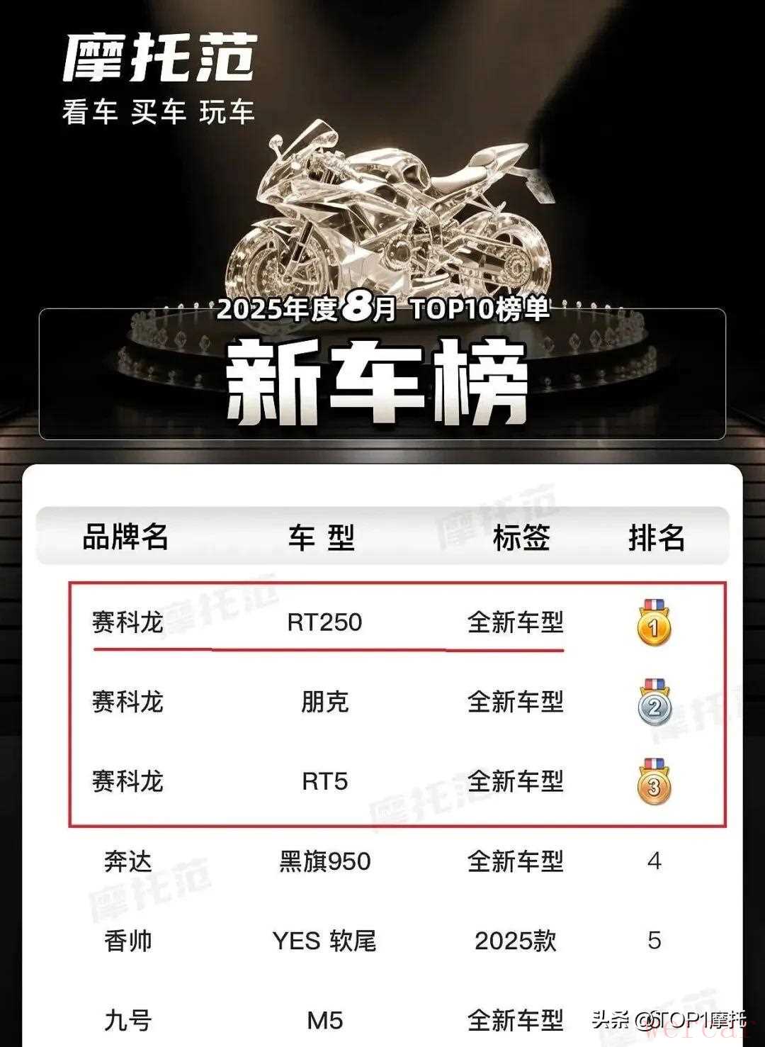 同时,赛科龙RT250也登上了,8月份摩托范新车榜的冠军之位,可见这台车还是备受关注的,毕竟性价比真的很高,而且高配版本,还配备有毫米波雷达,赛科龙还真想把卷王的位置做到底,也让250级别踏板的配置竞赛达到了一个新的高度。想知道这台车为什么这么受关注,看完今天的测评你就知道了。
