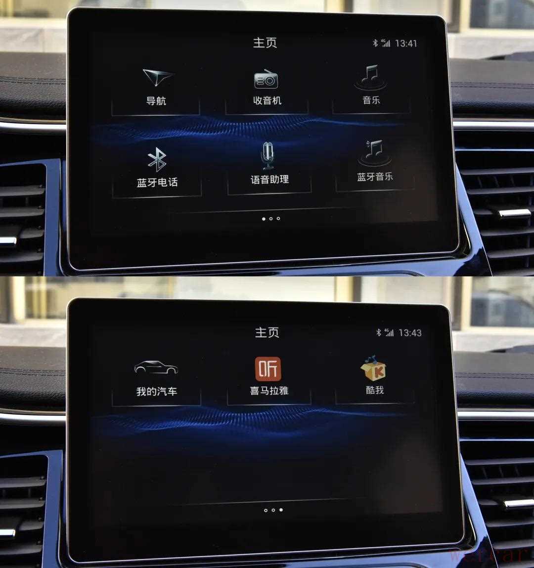 10英寸的液晶屏为全系标配,操作流畅度以及UI设计都能令人满意,车机系统还内置有喜马拉雅、酷我音乐这样的常用软件,功能方面则支持GPS导航、CarLife连接、车联网、语音识别等。