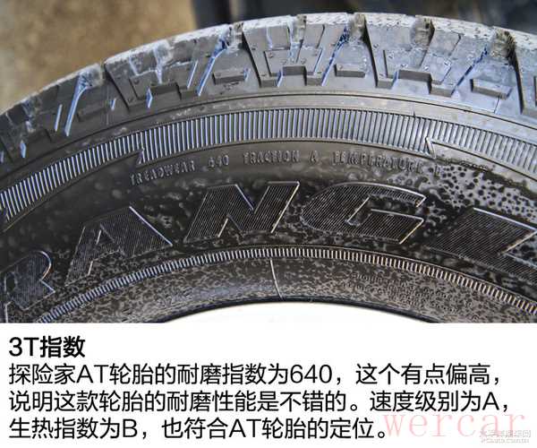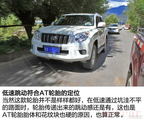 只是AT轮胎有用独特的定位,它的胎体做得比较硬,即使是采用独特的静音舒适性胎体配方的探险家AT轮胎,在低速行驶在城市路段时,轮胎的跳动还是能清晰的感受出来。这也没什么,对于AT轮胎而言,这种弹跳感也不算什么大事。
