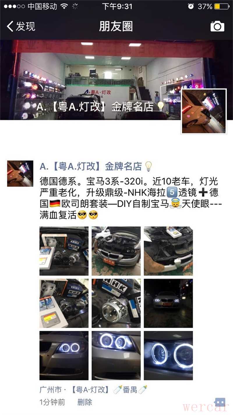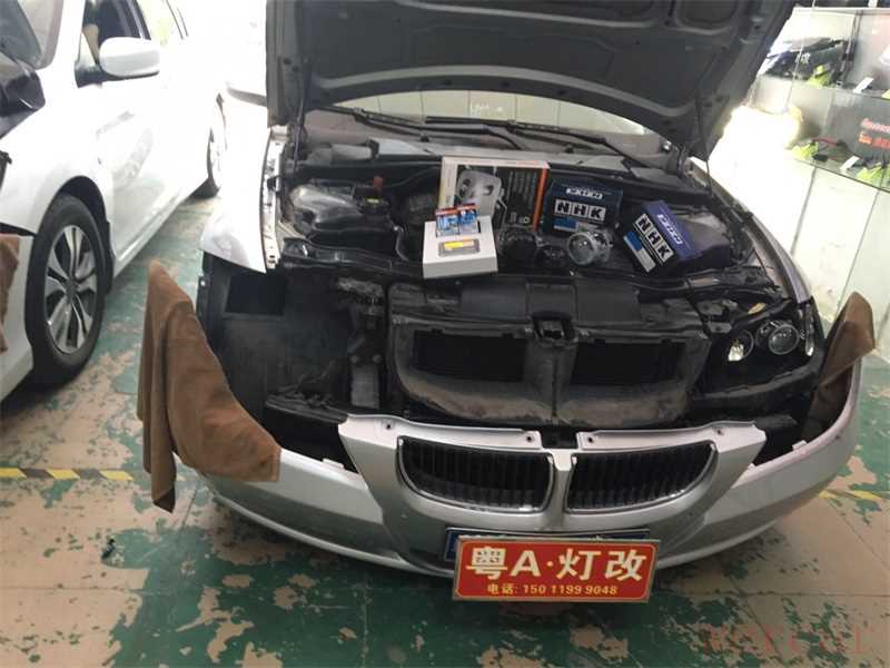 这款是将近十年的老车,年久色衰,老眼昏花呀......大多数人都了解宝马320i老款的大灯原车本身不带天使眼,远近光皆是卤素反光碗大灯!车主每天游走宝马320i论坛最终诱惑太大无法抵抗的情况,最后选择了广州专业灯光升级店~粤A 灯改案例最多的一家改灯店,本来当天只是先去看看的,但是老板拿出配件认真为我讲解了一番后选择了灯光升级!!或许也是一种缘分吧,老板也是年轻人,挺实在的!好吧,那就直接装走吧……