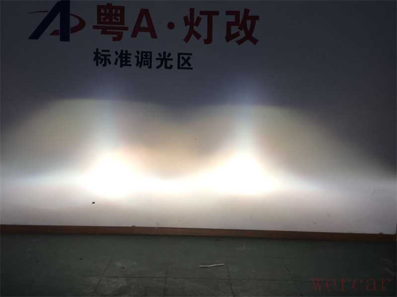 升级NHK蓝锐海五后近光灯效果图:明显锐利切割线、明显亮度更高、明显范围更广、光型尤其漂亮!!个人觉得从各个方面看都感到非常的满意,有一种未曾感觉完美的路感!!!