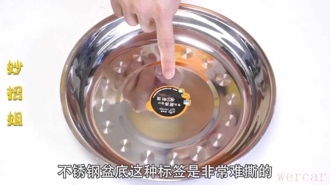 众所周知,不锈钢盆底这种标签是非常难撕的。