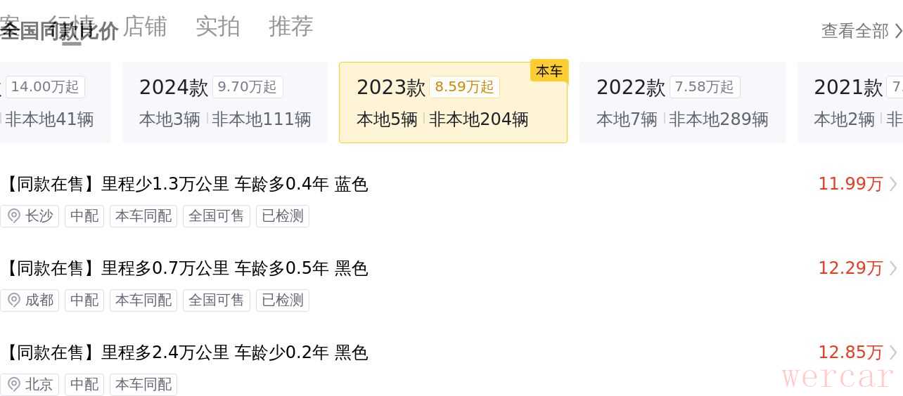 在挑选二手车的时候,除了看基本的车况信息,还要对市场行情有个大致的把握,这样才能知道具体某一辆车的价格是否合理。我们的文章会自动生成该车型的市场行情,以及全国范围内相同车型的售价情况,辅助您判断本车的售价是否合理。