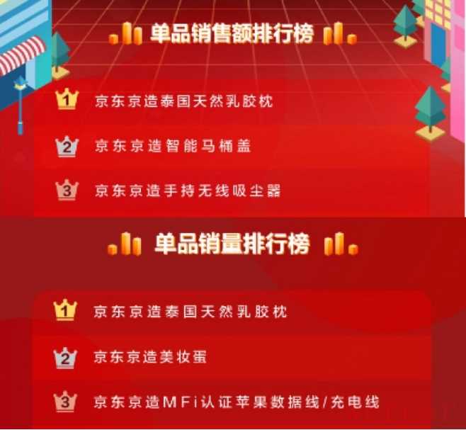 本次网购排行榜,以电器和居家品类著称的京东京造榜单也成为一大看点,其泰国天然乳胶枕更是豪夺单品销售额排行榜和单品销量排行榜双冠王。记忆棉枕头、泰国天然乳胶床垫、超声波加湿器等增加生活舒适度的产品也获得了消费者的青睐,纷纷入榜。