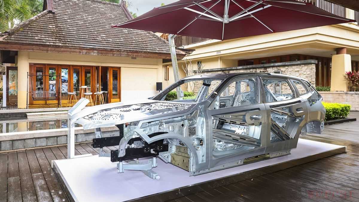横向动力学管理系统,到了第9代了,白车身的抗扭刚度32800 N・m/deg,在不含电池包的燃油车上,非常棒。以及,载荷不仅是前后50比50,甚至左右也是50比50。