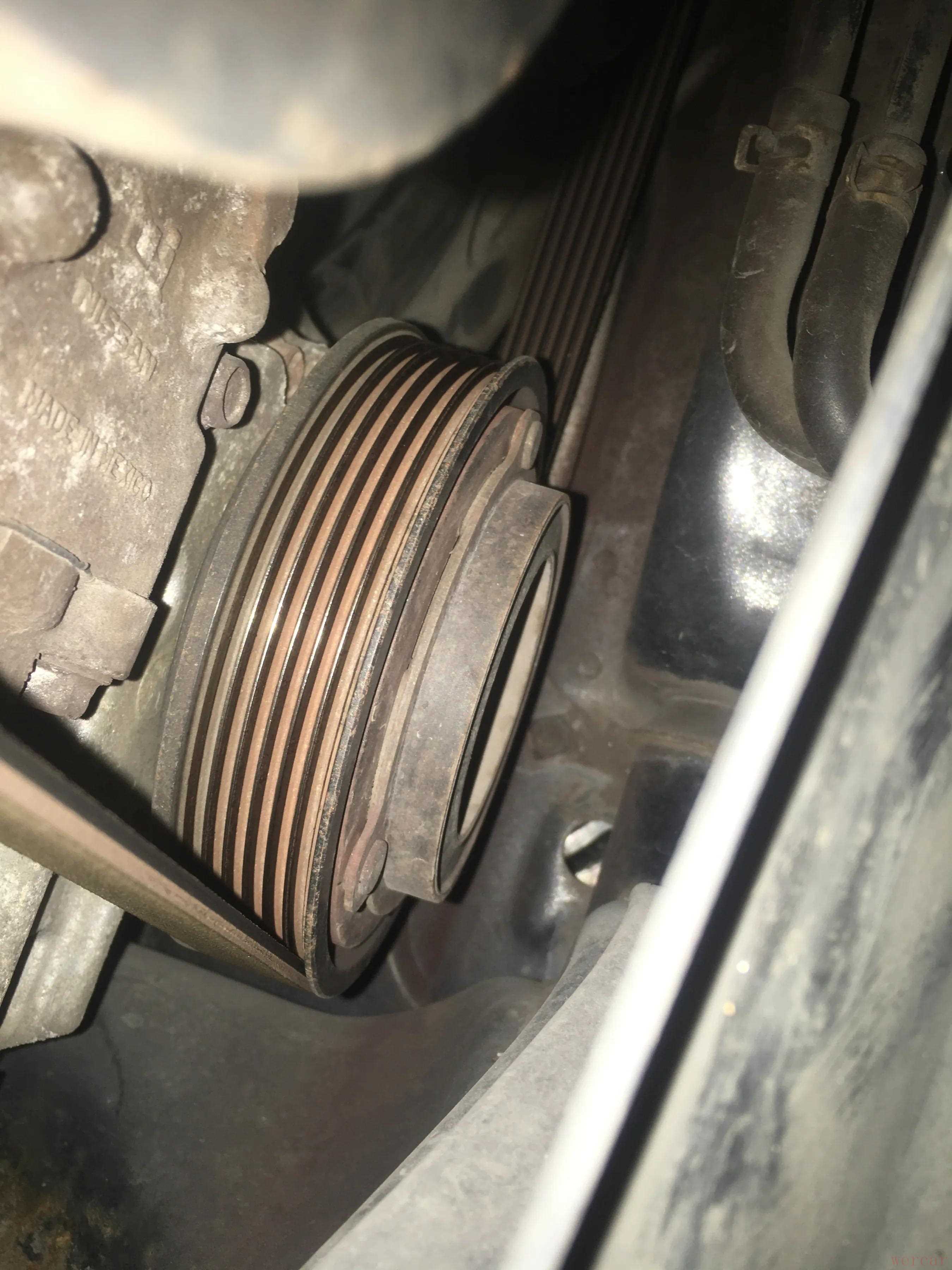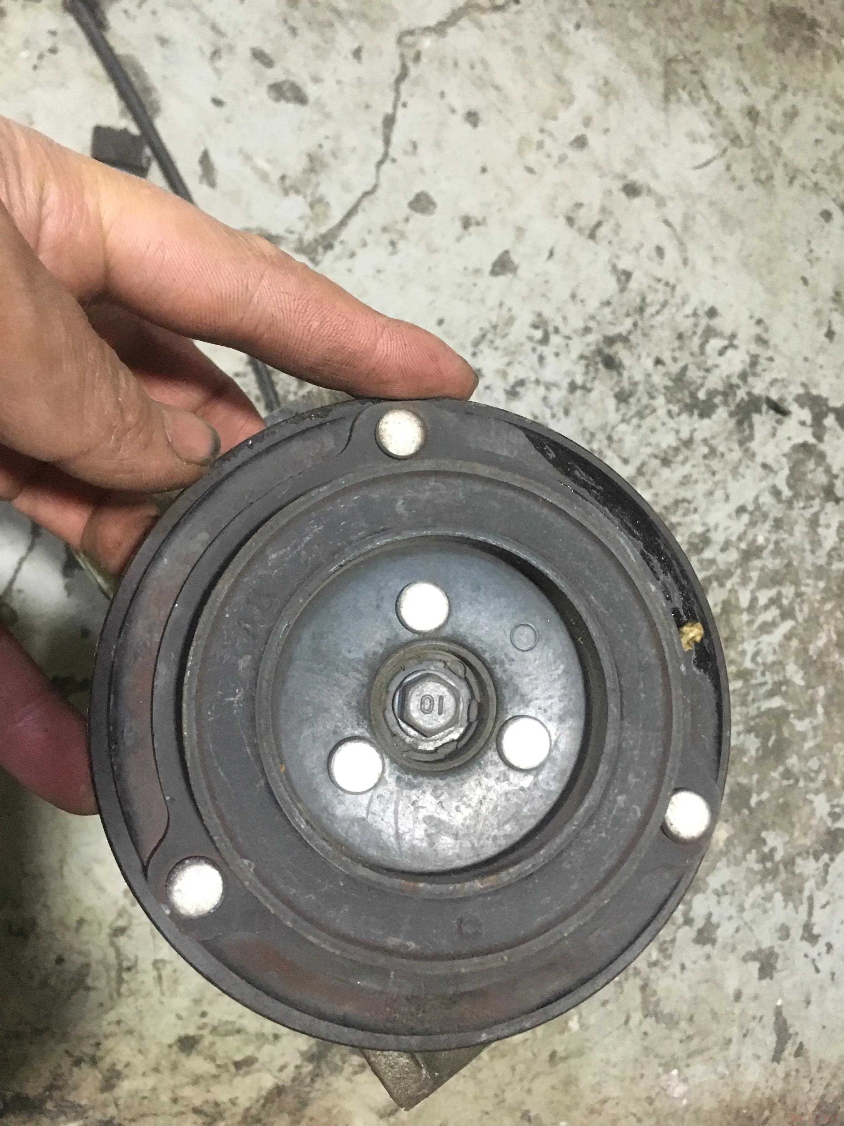 本着为客户着想的服务态度,我一般都建议客户单独换个线圈就好了。换线圈也不难,压缩机都不用拆下来,需要把发电机皮带取下来,拆开叶子板内衬,让整个压缩机皮带盘露出来,发动机下护板也要拆掉,然后拆压缩机皮带盘压盘中心固定螺丝,可以选择用风炮拆,正常扳手不好拆,压盘会跟着转,