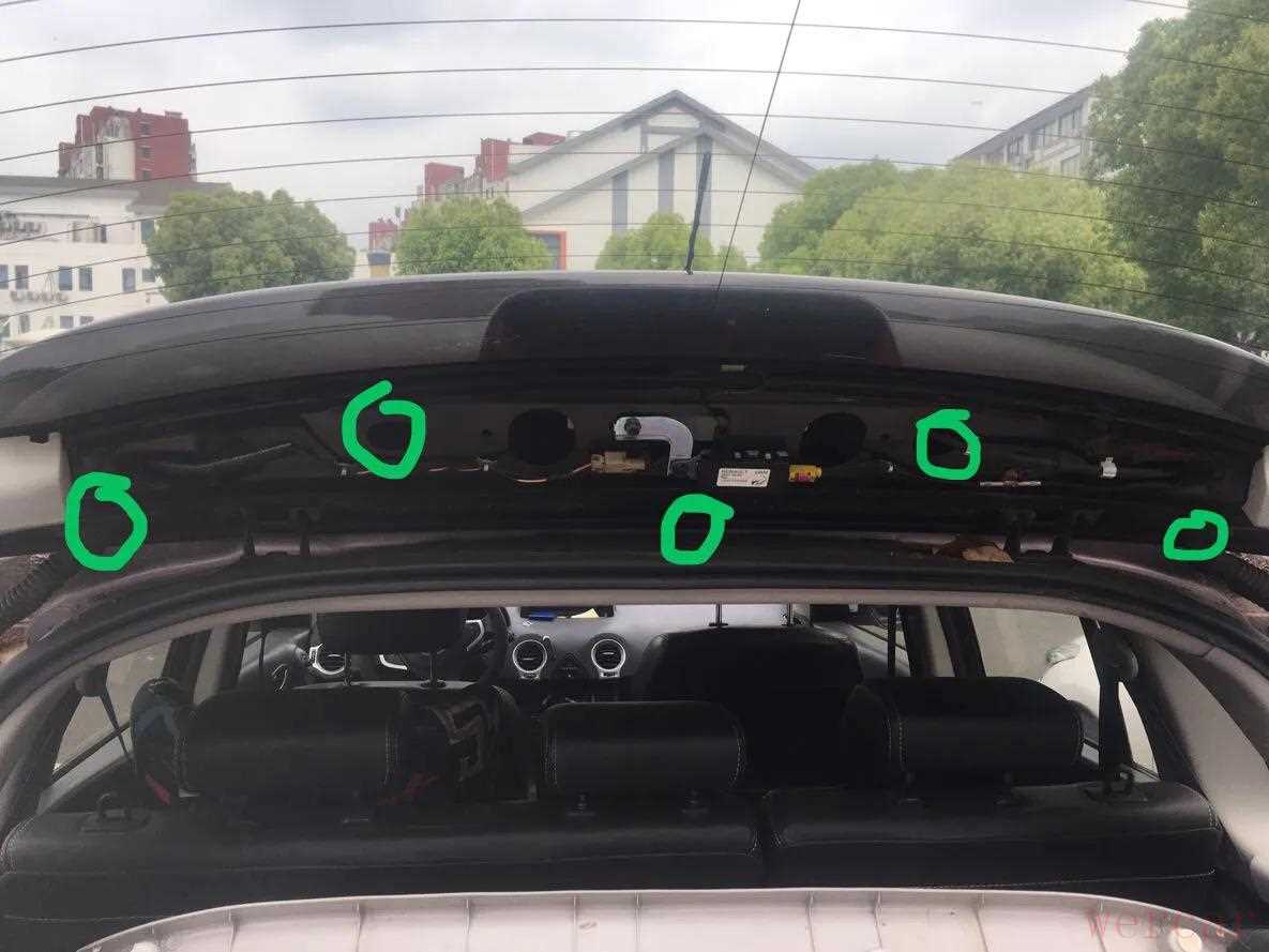 通病二:尾翼螺丝松动,甚至掉落。刚刚我晃了晃我车子的尾翼,感觉有点晃,撬开内饰板后发现有一颗螺丝掉落,其他四颗固定螺丝均有不同程度的松动,得亏尾翼上还有一层3M双面胶,不然真有可能跑着跑着就不见了,大家没事的时候摸摸自己车的尾翼,发现松动及时处理。