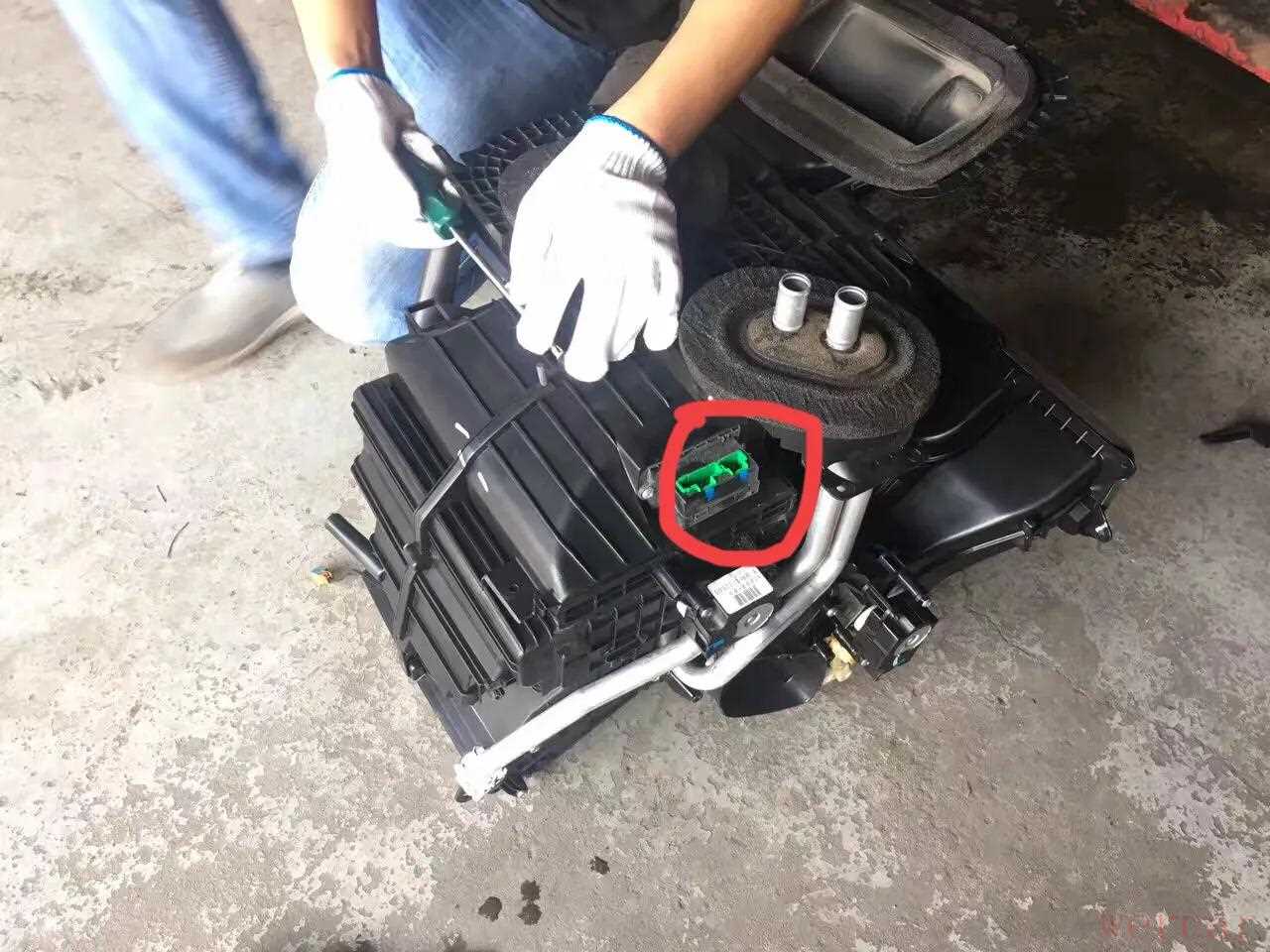 通病五:夏天开着空调,突然空调没风了,那叫一个热啊。我记得有个朋友大夏天的光着膀子,四个车窗全开,关键还满头大汗,一路狂飙找我来修车,想想那场景,如果是辆面包车也就罢了,关键它不是,而且好歹也是辆进口车,出现这个问题也是让人笑掉大牙了。问题出在空调风速电阻上,这个电阻的位置也是很隐蔽,不知道的得找个一会。它安装在空调滤网后面,由两颗十字螺钉固定,耀眼的绿色插头两个,一大一小,用个小萝卜头拆都很别扭的位置,没有个十几二十分钟是拆不下来的,虽然只有两颗螺丝。