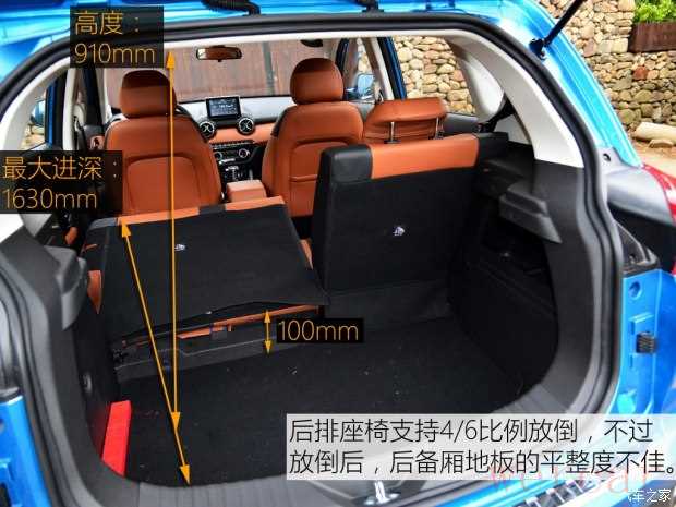 正常状态下,后备厢的进深为720mm,满足日常使用问题不大。后排座椅支持4/6比例放倒,可以进一步拓展后备厢的空间。不过将后排座椅放倒后,后备厢的地板并不平整,仍有10厘米的“台阶”,会影响到物品的摆放,这里有待改进。