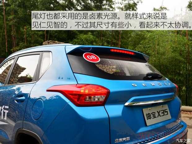 与车头成熟而不失时尚的造型相比,车尾的样式则有些保守。除了“SENOVA”和绅宝X35的标识,似乎你找不到能有较高辨识度的设计。尤其是尾灯的尺寸偏小,或许它是想展现普拉多或是揽胜极光式的大车身配小尾灯的视角,但效果并太不理想。