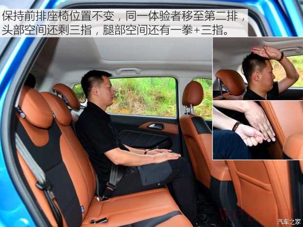 与内饰的配色保持一致,座椅同样运用黑棕双色来拼接。皮革材质的手感尚可,内部填充物的软硬度适中,乘坐起来偏于舒适。身高179cm的体验者在前后两排进行体验,绅宝X35在空间方面的表现还是比较让人满意的。