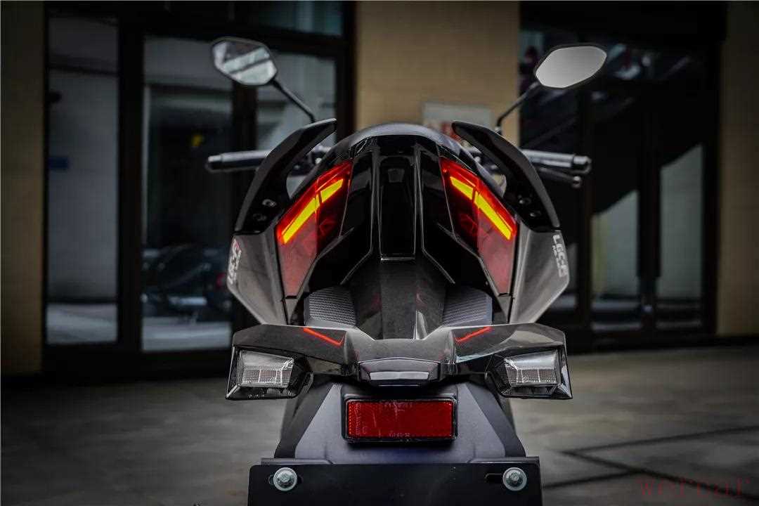 车头和车尾设计也是KPS150外观造型上的亮点,倒梯形大灯组配合边缘LED行车灯带,加上头部条型转向灯以及装饰小风挡,车头造型科技感十足。其尾部造型同样犀利,尾灯组置于后座两侧,后转向灯集成在后牌照支架上,拥有较高辨识度。