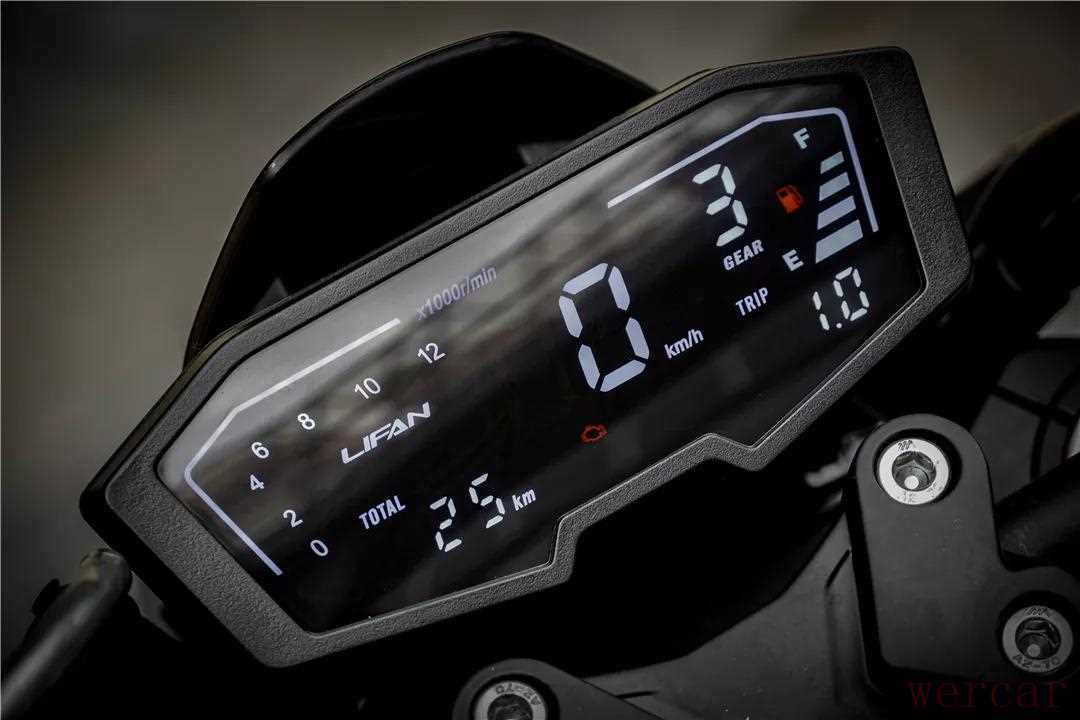 数码液晶仪表,显示效果清晰,车速、转速、里程、油箱等信息悉数显示。