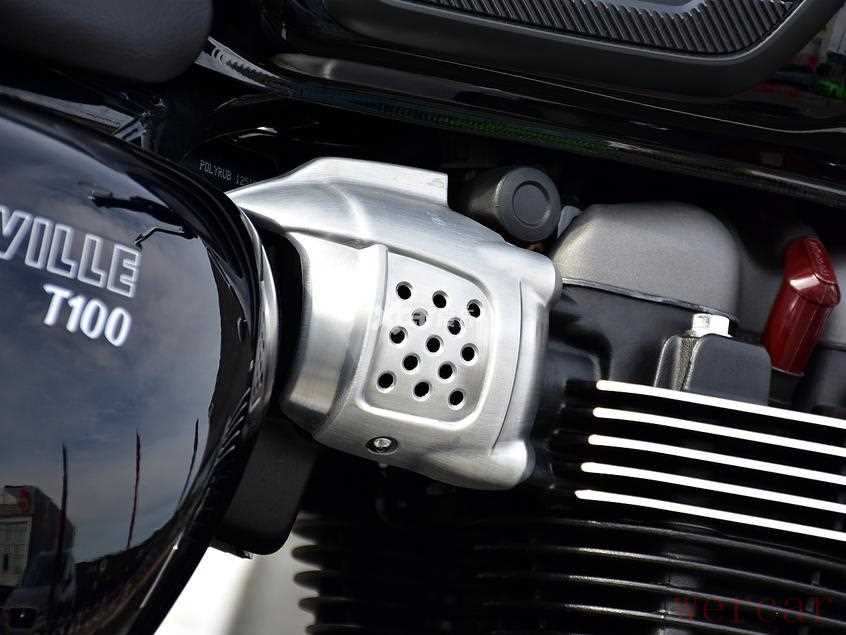 Bonneville T100的离合器边盖采用了消光处理,外表质感十足。