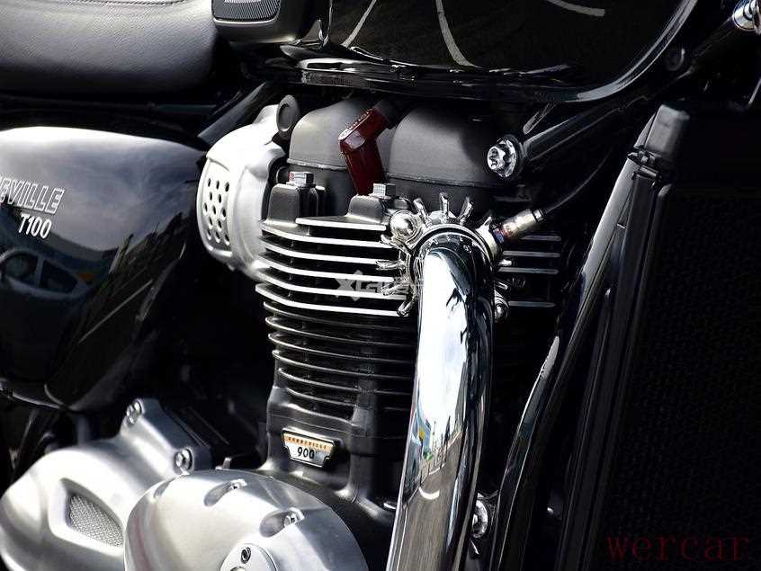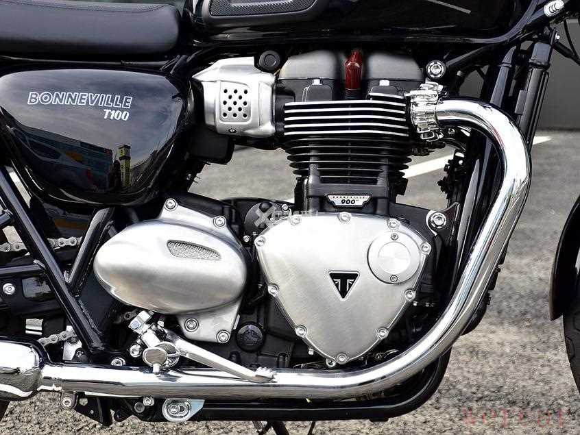 Bonneville T100所搭载的这台排量为900cc的水冷八气门垂直并列双缸发动机,可在5900rpm时迸发出40.5kW(55Ps)的最大功率,以及80Nm/3230rpm的最大扭矩,与其相匹配的是5挡变速器;虽然这台发动机曲轴调整为270°,但这也让Bonneville T100的声浪更澎湃、更具辨识度。