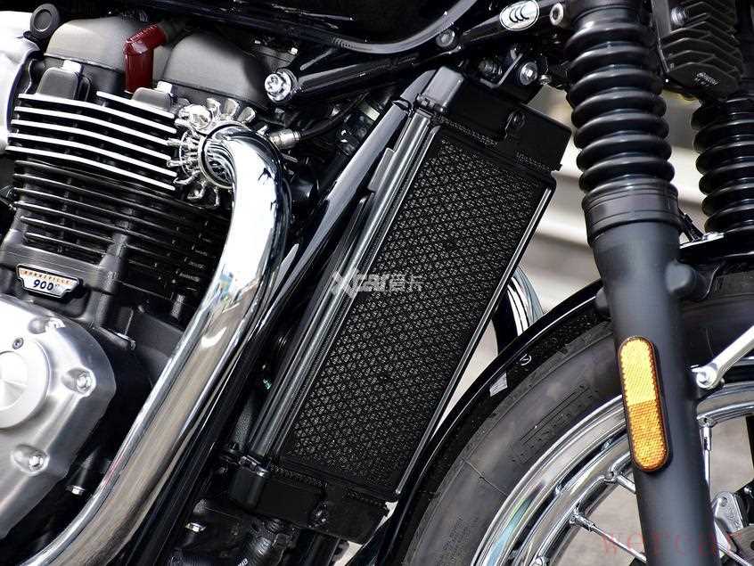 即便在水冷加持下,Bonneville T100仍然保留了风冷缸体的鳞片散热结构,向经典Bonneville致敬的意味浓厚。