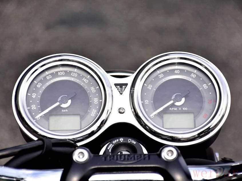 镀铬包边处理的双筒机械仪表,是复古街车最后的执念,在机械表内的两块LCD显示屏,负责挡位、油表、行车电脑信息显示。