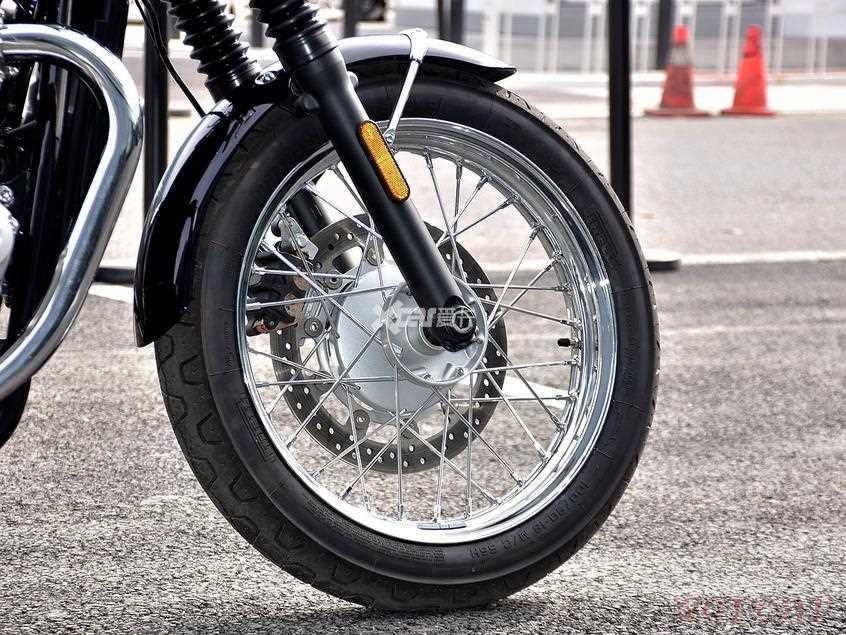 前18寸、后17寸的轮圈搭配在保留传统设计的同时,最大限度的保留了车辆的运动性,带有内胎的钢丝辐条轮圈也让它的格调再度提升;倍耐力也为Bonneville提供了专属复古轮胎,其轮胎规格为前100/90 R18、后150/70 R17。