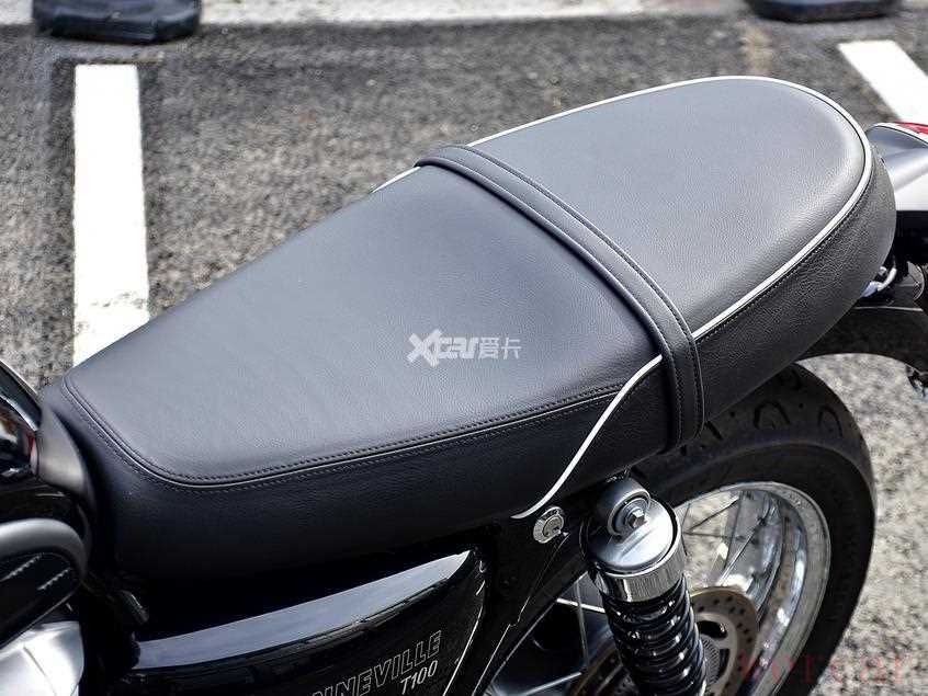 相对平直的一体式座垫没有过多点缀,仅用了白色包边来曾加视觉效果,返璞归真的感觉正是Bonneville T100最吸引人的地方,不过厚实的座垫也让它的座高达到了790mm。